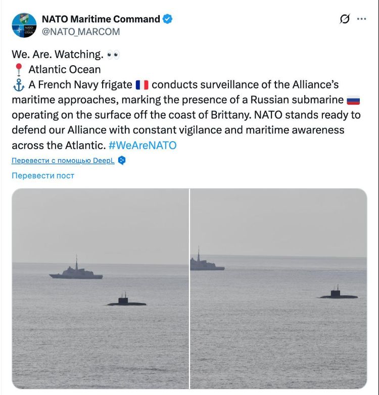 „NATO je spreman braniti naš Savez održavanjem stalne budnosti i svjesnosti o pomorskoj situaciji s obje strane Atlantika“, objavljeno je na X (Twitteru), bez imenovanja podmornice.