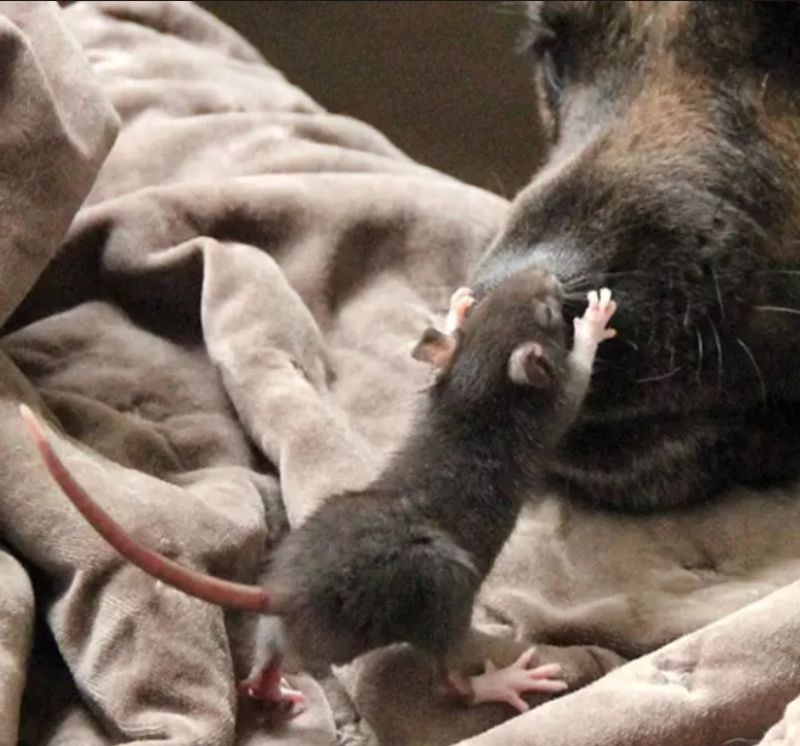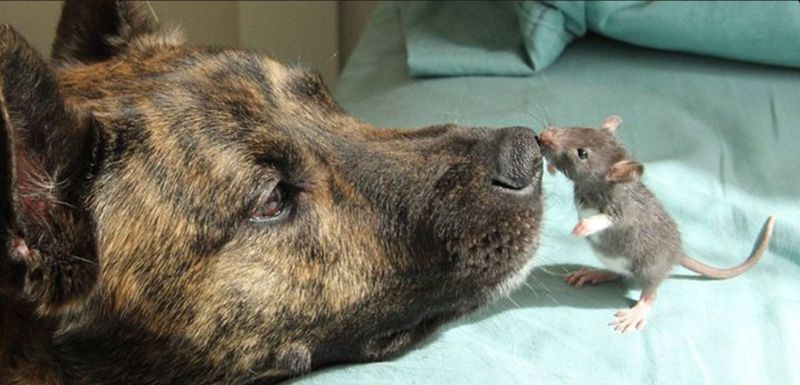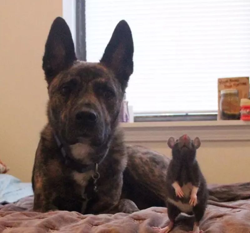Unatoč razlici u veličini, pas Oziris je postao najbolji prijatelj sa štakorom