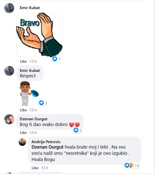Nakon nekog vremena Petrović se oglasio i zahvalio svima na pomoći u pronalasku osobe koja je izgubila novac. Kako je rekao, pare su vraćene onome kome pripadaju.